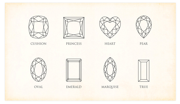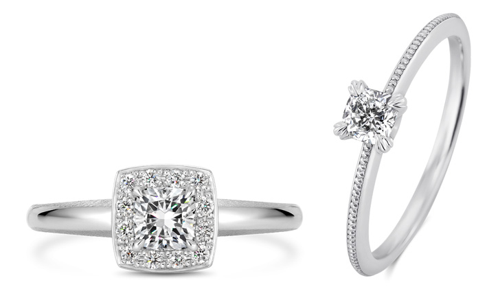 ダイヤモンドには四角やハートなど豊富なシェイプがあり、それぞれに個性豊かな輝きがあります。